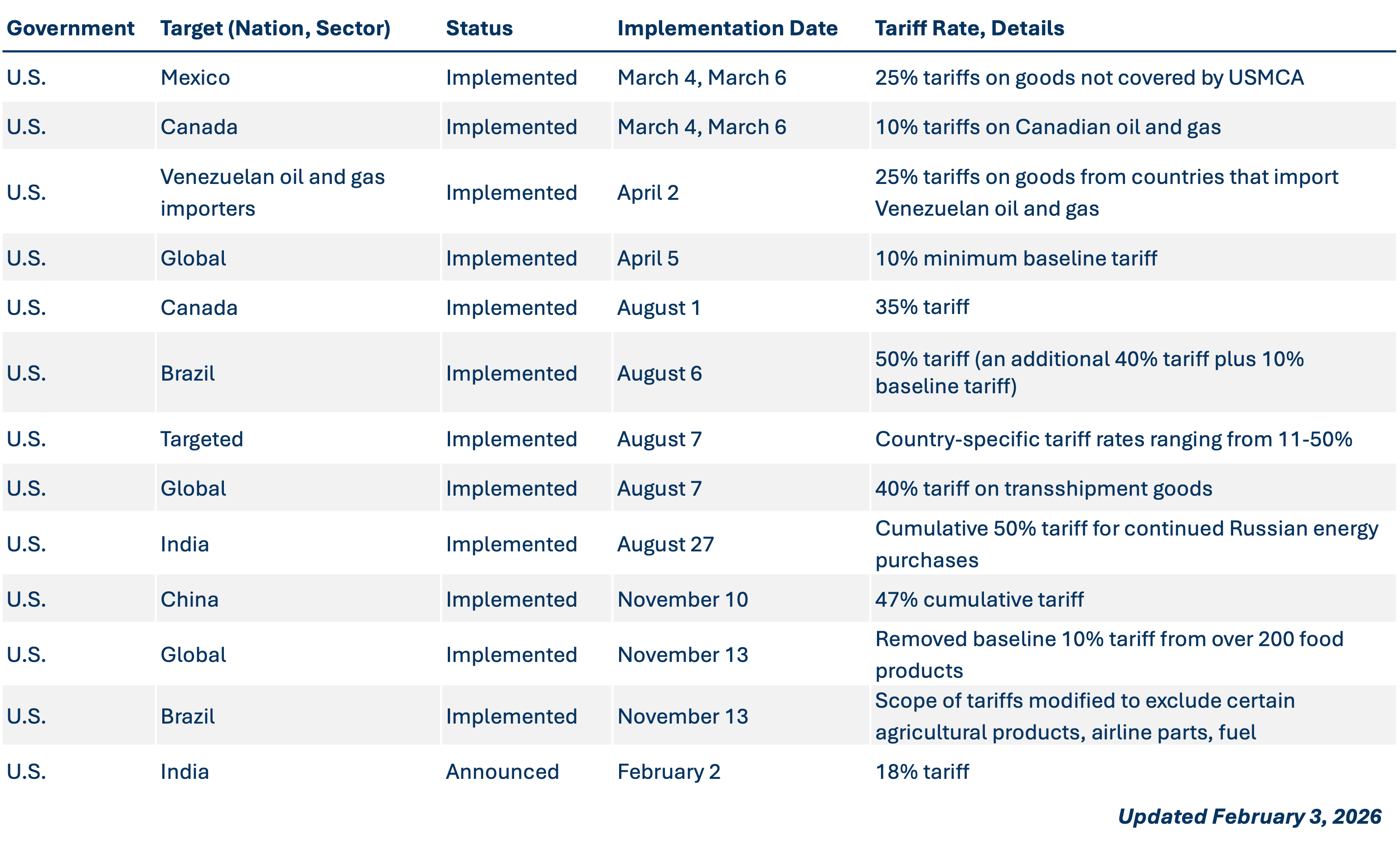 Breakthrough’s Tariff Tracker provides real-time updates on changing trade policies, helping transportation and supply chain leaders adapt quickly. Tariffs continue to reshape international trade, transportation strategies, and domestic industries. Use our tariff tracker to monitor key changes, evaluate impacts on your supply chain, and stay ahead of evolving regulations.